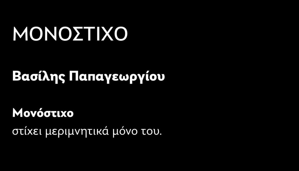 Μονόστιχο December 11, 2025December 11, 2025 ~ chromata Share this:Share Click to email a link to a friend (Opens in new window) Email Click to print (Opens in new window) Print Click to share on X (Opens in new window) X Click to share on Facebook (Opens in new window) Facebook Like Loading... Published by chromata View all posts by chromata